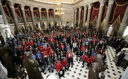 أعضاء السرب المقاتل 99 في مهد تسكـِگي، أول سرب أمريكي من الأفارقة الأمريكان يُكرم في قاعة التماثيل الوطنية، 2007.