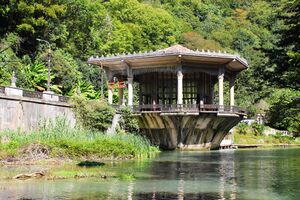 New Athos cave is a karst cave in the Iverian Mountain, few km far from the town.[11] Since 1975 it is served by the New Athos Cave Railway.[12]
