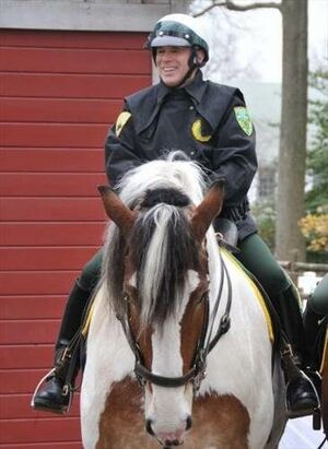 Auxiliary officers patrol in uniform and on horseback in various NYC parks, and "ensure the preservation of the natural and living resources in the city's parks, as well as the safety of those utilizing the parks, by maintaining a clearly visible presence. They monitor areas that are not accessible by vehicle; they deter, identify and report illegal or unsafe activities that require Parks Enforcement Patrol or police attention; and they advise the public on park rules and regulations."[14]