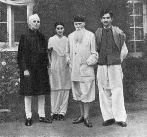 In 1942, Roerich received Jawaharlal Nehru and his daughter, Indira Gandhi, at his house in Kullu.[31] Together they discussed the fate of the new world: "We spoke about Indian–Russian cultural association [...] it is time to think about useful and creative co-operation."[32]
