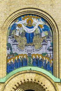 Another of Roerich's artistic subjects was architecture. His acclaimed publication "Architectural Studies" (1904–1905), consisting of dozens of paintings he made of fortresses, monasteries, churches, and other monuments during two long trips through Russia, inspired his decades-long career as an activist on behalf of artistic and architectural preservation. He also designed religious art for places of worship throughout Russia and Ukraine, most notably the Queen of Heaven fresco for the Church of the Holy Spirit, which the patroness Maria Tenisheva built near her Talashkino estate, and the stained glass windows for the Datsan Gunzechoinei in 1913–1915. His designs for the Talashkino church were so radical that the Orthodox church refused to consecrate the building.[10]