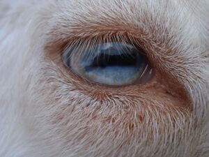 The Nigerian Dwarf is small but well-proportioned; its conformation resembles that of larger dairy goats.[4]:399 It may be horned or naturally hornless.[2] The coat is fine and fairly short, and may be of any color, or multicolored;[2] common colors are gold, chocolate and black, frequently with white markings. The facial profile may be concave or straight; the ears are upright.[4]:399 The average weight is approximately 35 kg (75 lb), while maximum height is about 60 cm (24 in) for males and slightly less for females;[4]:399 stock bred for dairy performance may be rather larger than show or companion animals.[2]