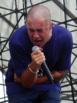 Staind's vocalist Aaron Lewis rejected the nu metal label, saying, "If we get called a 'nu metal' band one more time, I don't even know what I'm going to do!"[40] In 2003, Chino Moreno, vocalist of Deftones, rejected the nu metal label saying "We told motherfuckers not to lump us in with nu metal because when those bands go down we aren't going to be with them".[333] As Deftones abandoned the nu metal sound of their early work, Moreno tried to distance himself from nu metal bands and began to criticize the bands and their albums, including Korn's 2002 album Untouchables; he said, "As Korn go on, it's the same things—bad childhoods and mean moms. It gets too old after a while. How old is Jonathan [Davis]? Thirty? How long has it been since he lived with his parents?"[334][335] Davis responded saying, "Obviously, Chino hasn't listened to the words on the rest of my albums because they're nothing about my parents or my childhood."[335] Moreno also said, "A big problem for me was opening for Limp Bizkit and Linkin Park, two bands that wouldn't exist if it weren't for me, straight up!".[334] Mike Shinoda of Linkin Park spoke about the nu metal label in an interview with NME, saying "We never held the flag for nu-metal—it was associated with frat rock. Arrogant, misogynistic, and full of testosterone; we were reacting against that."[336][337] Wes Borland of Limp Bizkit said that he "never liked or condoned" the term "nu metal" in any way, and said he does not understand "how so many bands that sound nothing alike can be put into" the nu metal genre.[338] Mike Wengren of Disturbed said that he doesn't think Disturbed "were ever a nu-metal band to begin with".[339]