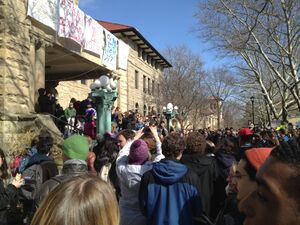Oberlin's Winter term, occurring each January, is described as "a time for students to pursue interests outside of regular course offerings through immersive learning experiences."[108] Students may work alone or in groups, either on or off campus, and may design their own project or pick from a list of projects and internships set up by the college each year.[109] Students must complete a winter term project three years out of their four in the College of Arts and Sciences. Projects range from serious academic research with co-authorship in scientific journals, humanitarian projects, making films about historic Chicago neighborhoods, and learning how to bartend. A full-credit project is suggested to involve five to six hours per weekday.[110]