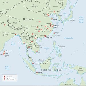 من عام 1943 إلى 1945، لعبت OSS دورًا رئيسيًا في تدريب قوات كومنتانگ في الصين وبورما، وتجنيد شعب الجنگپو وقوات غير نظامية محلية أخرى للتخريب بالإضافة إلى أدلة قوات الحلفاء في بورما التي تقاتل الجيش الياباني. من بين الأنشطة الأخرى، ساعدت OSS في تسليح وتدريب وإمداد حركة المقاومة في المناطق المحتلة من قبل قوى المحور خلال الحرب العالمية الثانية، بما في ذلك جيش ماو زىدونگ الجيش الأحمر في الصين (المعروف باسم مهمة ديكسي) و ڤيت منه في الهند الصينية الفرنسية. لعب ضابط OSS أرخميدس باتي دورًا مركزيًا في عمليات OSS في الهند الصينية الفرنسية واجتمع كثيرًا مع هوشي منه في عام 1945.[10]