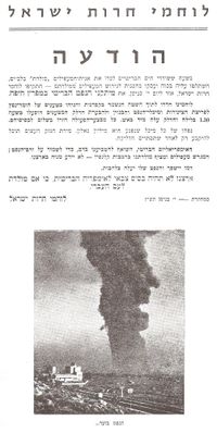 خبر في الصحف عن انفجار براميل النفط في مصفاة حيفا عام 1947.