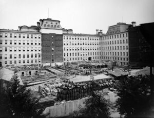 The first executive offices were constructed between 1799 and 1820 on the former site of the Washington Jockey Club, flanking the White House.[5] In 1869, following the Civil War, Congress appointed a commission to select a site and submit plan and cost estimates for a new State Department Building, with possible arrangements to house the War and Navy departments.[5]