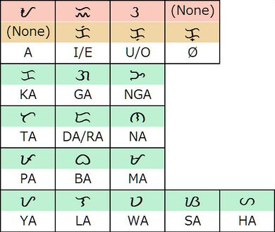 The Baybayin script, used to write in Tagalog prior to the arrival of the Spanish in 16th century.