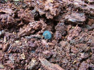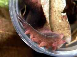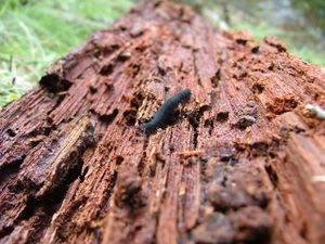 Euperipatoides kanangrensis on a eucalyptus log, in which it normally resides. | |