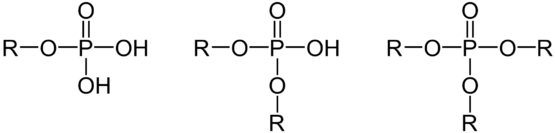 يمكن تصنيف مركبات الفوسفات العضوي، والتي هي إسترات حمض الفوسفوريك، على أساس عدد المرتبطات العضوية إلى إسترات أحادية أو ثنائية أو ثلاثية: