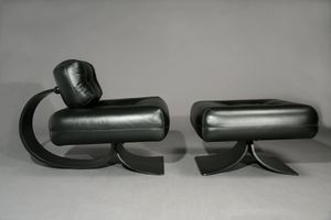 Oscar Niemeyer easy lounge and ottoman used in Communist Party Headquarters.