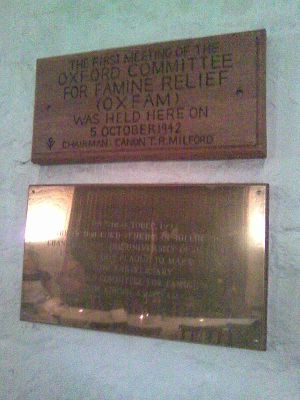 تأسست أوكسفام في أوكسفورد عام 1942، باسم لجنة أوكسفورد لإغاثة المجاعات، عن طريق مجموعة من الكويكر، الناشطين الاجتماعيين، وأكاديميي أكسفورد؛ وتشكل حالياً أوكسفام بريطانيا العظمى، ولا يزال مقرها في أوكسفورد، أوكسفوردشاير. وكانت واحدة من عدة لجان محلية تشكلت لدعم اللجنة الوطنية لإغاثة المجاعات. كانت مهمتهم حث الحكومة البريطانية على السماح للإغاثات الغذائية بالمرور عبر حصار الحلفاء للمواطنين الجوعى في اليونان المحتلة من قبل قوات الحلفاء. أول أوكسفام وراء البحار تأسست في كندا عام 1963.