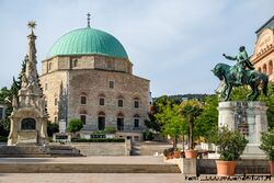 A good example of the city's history and interesting past can be seen in the main square, where the Gazi Kasim Mosque still stands, and, although consecrated as a church following the retreat of the Ottoman Turks centuries ago, the crescent moon of Islam is still visible on the cupola, surmounted by a cross. Indeed, Pécs is the richest town in Hungary in terms of Turkish architecture, with the ruins of Memi Pasa's Baths and the mausoleum of miracle worker Idris Baba, just two other notable remains. The Yakovalı Hasan Paşa Mosque, dating from the mid-1600s, still functions as an active mosque today. It is open to the public except during Friday services from 2.30 to 3.30 pm.