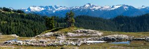 Much of the Pacific Northwest is forested. The Georgia StraitPuget Sound basin is shared between western British Columbia and Washington, and the Pacific temperate rain forests ecoregion, which is the largest of the world's temperate rain forest ecoregions in the system created by the World Wildlife Fund, stretches along the coast from Alaska to California. The dry desert inland from the Cascade Range and Coast Mountains is very different from the terrain and climate of the coastal area due to the rain shadow effect of the mountains, and comprises the Columbia, Fraser and Thompson Plateaus and mountain ranges contained within them. The interior regions' climates largely within Eastern Washington, south central British Columbia, Eastern Oregon, and southern Idaho are a part of the Great Basin Desert, although by their northern and eastern reaches, dry land and desert areas verge at the end of the Cascades' and Coast Mountains' rain shadows with the boreal forest and various alpine flora regimes characteristic of eastern British Columbia, the Idaho Panhandle and western Montana roughly along a longitudinal line defined by the Idaho border with Washington and Oregon. The North American inland temperate rainforest is in the so-called interior wet-belt, approximately 500–700 km inland from the Pacific coast on western, windward mountain slopes and valley bottoms of the Columbia Mountains and the Rocky Mountains. The interior wet-belt refers to a discontinuous band of humid forest patches, that are scattered over 1000 km between Purden Lake in Canada's British Columbia (54° North) and Montana and Idaho's Bitterroot Mountains and Idaho's Salmon River Mountains (45° North).[61] It is closely associated with the North Central Rockies forests ecoregion designated by the WWF, which extends over a similar range but incorporates various non-temperate rainforest ecosystems.