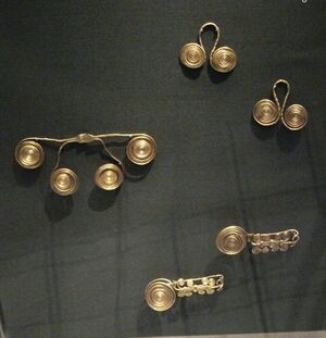 A Bronze Age gold hoard of jewelry was found between Paks and Dunaföldvár on the right bank of the Danube in the 19th century. The treasure is now in the collections of the British Museum.[1]