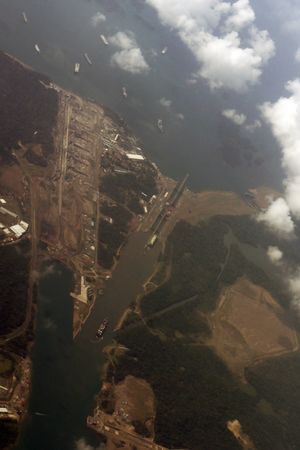 تعمل قناة پنما بكامل طاقتها في السنوات الأخيرة. تظهر في الصورة عشرات السفن تنتظر في المحيط الهادي لدخول القناة في 2013.
