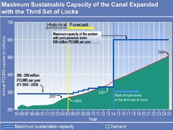 بدأت المؤسسات المشرفة على قناة بنما مشروعًا ضخمًا يهدف إلى تعميق مدخل القناة من جهة المحيط الأطلنطي لمرور سفن الشحن العملاقة الحديثة من خلال تزويد القناة بمجموعة ثالثة من السدود التي تسمح بمرور سفن أكبر تنقل بين 12 ألف إلى 15 ألف حاوية، مقابل 5 آلاف حاوية فقط حاليًّا، ومن ثم يرتفع بذلك حجم الترانزيت العابر للقناة بمقدار الضعف ليصل إلى 600 مليون طن سنويًّا، أي أن من المتوقع أن تساهم التوسعات الحالية في مضاعفة السعة الاستيعابية لقناة بنما وقدرتها على استقبال حاويات أكبر، وهو ما يُثير تساؤلات جوهرية حول تأثير هذه التوسعات الضخمة على الممرات البحرية والملاحية الدولية البديلة، وخاصة قناة السويس، خاصةً أن هذا المشروع من المرجح أن تنتهي أعماله التأسيسية بحلول عام 2016، أي بالتوازي مع أعمال تأسيس قناة السويس الجديدة في مصر.[10]