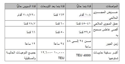 • السماح بمرور سفن أكبر عن العرض والطول الحالي بمرة ونصف، وبحمولات ضعف الحالية.