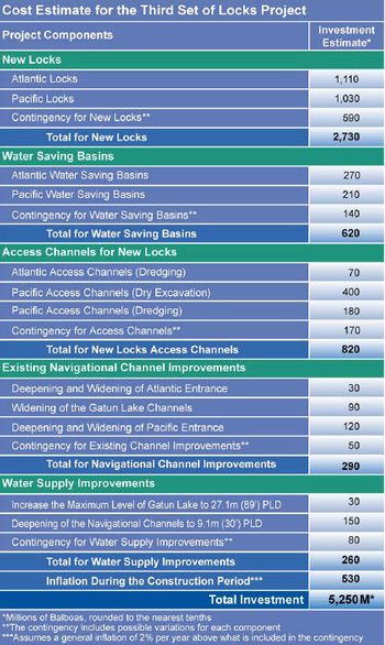 تقديرات تكلفة مشروع توسيع قناة پنما