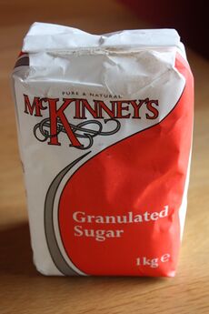 A paper sack is a type of paper bag that can be constructed of one or several layers of high quality kraft paper, usually produced from virgin fibre. Paper sacks can also be referred to as industrial paper bags, industrial paper sacks, shipping sacks or multi-wall paper bags or sacks. They are often used for packaging and transporting dry powdery and granulated materials such as fertilizer, animal feed, sand, dry chemicals, flour and cement. Many have several layers of sack papers, printed external layer and inner plies.[12] Some paper sacks have a plastic film, foil, or polyethylene coated paper layer in between as a water-repellant, insect resistant, or rodent barrier.