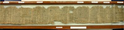 The papyrus is 19.5 centimeters in height, and 142.5 centimeters long.[3] Parts of the original papyrus are missing.