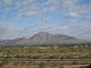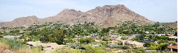 Mummy Mountain dominates Paradise Valley's central terrain. Other landmarks include Camelback Mountain on the southern border and the Piestewa Peak mountainous area on the western border.