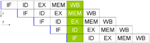 A canonical five-stage pipeline in a RISC machine (IF = Instruction Fetch, ID = Instruction Decode, EX = Execute, MEM = Memory access, WB = Register write back)