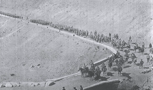 On 8 May 1915, one of the twelve Armenian messengers from the Siege of Van had got through to Persia.[19] An Armenian volunteer unit with Andranik, along with 1200 men, and commander Chernoroyal's division dispatched toward the Bashkaleh. On 7 May, they captured Bashkaleh. This group from Persia reach the City of Van on 18 May.[19] They had expected to find Van still in a state of siege, and were amazed at finding it in the hands of the Armenians.[19] When word got to Yudenich, he sent a brigade of Trans-Baikal Cossacks under General Trukhin. With Van secure, the fighting shifted farther west for the rest of the summer.[17]
