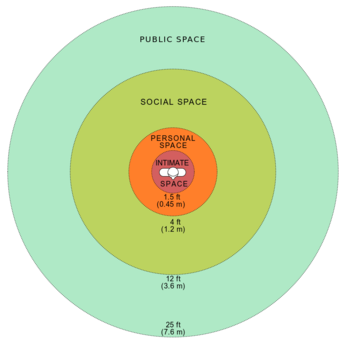 المساحة بين الأشخاص هي من الناحية النفسية عبارة عن "الدائرة" التي تنشأ بوقوف الشخص قريبًا جدًا من شخص آخر. أظهرت الدراسات أن هناك أربع مناطق مختلفة للمساحة بين الأشخاص: