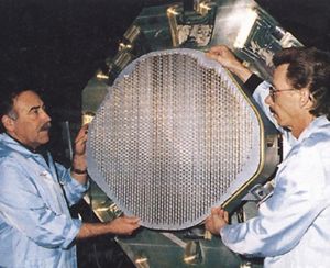 In 2004, Caltech researchers demonstrated the first integrated silicon-based phased array receiver at 24 GHz with 8 elements.[17] This was followed by their demonstration of a CMOS 24 GHz phased array transmitter in 2005[18] and a fully integrated 77 GHz phased array transceiver with integrated antennas in 2006[19][20] by the Caltech team. In 2007, DARPA researchers announced a 16-element phased-array radar antenna which was also integrated with all the necessary circuits on a single silicon chip and operated at 30–50 GHz.[21]