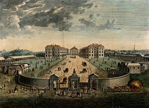 The Foundling Hospital in London, 1753ح. 1753. The original building has since been demolished.