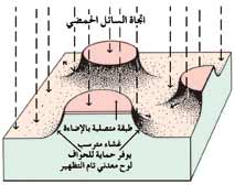 ويقوم الفيلم السالب هنا مقام الرَوْسَم ـ الإستنسل ـ إذ تتمكن أشعة الإضاءة القوية من النفاذ من الأجزاء الفاتحة في الفيلم السالب ـ الأجزاء المصورة ـ إلى سطح اللوح المعدني المجهز بطبقة من محلول حساس للضوء، فتتصلب الأجزاء التي تتعرض للإضاءة، وتصير غير قابلة للإزالة، بينما تحتفظ الأجزاء الواقعة تحت المساحات الداكنة برطوبتها وقابليتها للإزالة، فيتم ذلك بغمرها بالمياه لتذويب الأجزاء الرخوة وإزالتها. وبذلك تتم عملية التظهير ـ التحميض ـ للوح المعدني ويكون محتفظًا فقط بالمساحات الصلبة الواقية من الحموض.