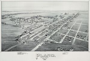 In 1872, the completion of the Houston and Central Texas Railway helped Plano grow, and it was incorporated in 1873.[9] By 1874, the population was over 500.[2] In 1881, a fire raged through the business district, destroying most of the buildings.[2][9] Plano was rebuilt and business again flourished through the 1880s. Also in 1881, the city assumed responsibility for what would eventually become Plano Independent School District (PISD), ending the days of it being served only by private schools.[2]