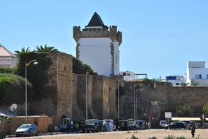 Among the most spectacular bastions and towers standing as representatives of the Portuguese stronghold are the Borj al-Bahr and the Borj al-Kamra. The first was built between 1508 and 1516, stretched out to sea and was used to track the arrival and departure of supplies and reinforcements by ship. The second, dubbed Torre de Menagem in Portuguese was the main tower of the stronghold, and it marks the medina of Asilah with its imposing appearance. Built in 1509 and reproduced on a very famous engraving of Assilah in the 16th century, it featured a double-pitched roof and turrets at the four corners. These architectural features refer to the style of Portuguese military architecture. This tower ensured a public function and more ceremonial than military, conveying the image of power. It is a remnant of the Portuguese governor's residence, which was built over the location of the Moroccan governor's palace in medieval Asilah.