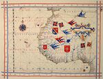 A Portuguese attempt to capture Grand Canary, one of the nearby Canary Islands, which had been partially settled by Spaniards in 1402 was unsuccessful and met with protestations from Castile.[8] Although the exact details are uncertain, cartographic evidence suggests the Azores were probably discovered in 1427 by Portuguese ships sailing under Henry's direction, and settled in 1432, suggesting that the Portuguese were able to navigate at least 745 ميل (1،200 km) from the Portuguese coast.[9]