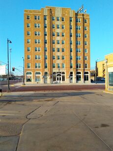 Built in 1930, Hotel Roberts is the largest and most highly styled historic hotel in Pratt. Construction of the hotel was initiated by the Pratt Chamber of Commerce, which formed a committee in the late 1920s specifically to facilitate the construction of a large new hotel. Seen as a potentially valuable asset for the community, the hotel was financed in part through a public subscription campaign, and constructed on land provided by the Chamber. The Pratt Hotel Company owned and operated the hotel and hired Wichita architect Samuel S. Voigt and Kansas City contractor Webster L. Elson to design and build the building. Elson not only supervised the rapid construction of the "fire-proof" building, he was a founding member of the Pratt Hotel Company, and he retained an ownership interest in the property for many years. The community hospital was established on the eighth floor of the building in 1932, complete with an operating room and an x-ray machine. Architecturally, the building is significant as an early and sophisticated example of the Art Deco style in central Kansas. The hotel opened as the Hotel Roberts in 1930, and continued under that name until 1959, when it was purchased by Monte Parrish and renamed the Hotel Parrish. In January 2015 it was listed on the National and State Registers of Historic Places for its local significance in the areas of architecture and community planning and development.[9]