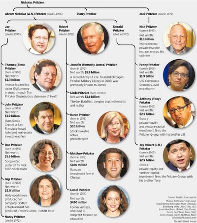 - ^ "Pritzker family agreement to divide wealth comes to a close". Chicago Tribune. June 12, 2005. Retrieved 2016-03-21.