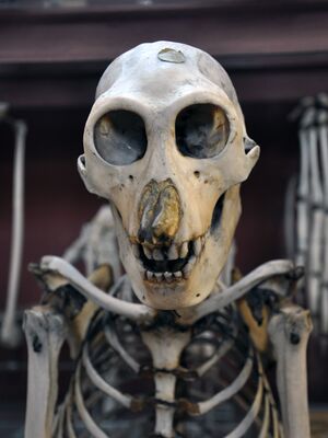 The nose is smaller in the female and is upturned in the young.[17] Nevertheless, the nose of the female is still fairly large for a primate. The skull of the proboscis monkey has specialized nasal cartilages that support the large nose.[3]