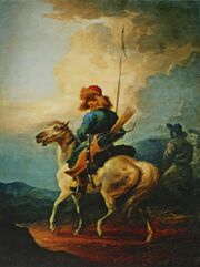 While the Bashkirs had a clear unified role in the rebellion, the Buddhist Kalmyks and Muslim Kazakhs, neighboring Turkic tribes in the steppe, were involved in a more fragmented way. The Kazakhs were nomadic herdsman like the Bashkirs, and were in constant struggle with neighboring indigenous groups and Russian settlers over land. Pugachev tried hard to get Kazakh leaders to commit to his cause, but leaders like Nur-Ali would not do so fully. Nur-Alit engaged in talks with both Pugachev's and Tsarist forces, helping each only when it was advantageous for him. The Kazakhs mostly took advantage of the rebellion's chaos to take back land from Russian peasants and Bashkir and Kalmyk natives. Historian John T. Alexander argues that these raids, though not directly meant to help Pugachev, ultimately did help by adding to the chaos that the Imperial forces had to deal with.[17]