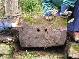 The type of railroad tie used on the predecessors of the first true railway (Liverpool and Manchester Railway) consisted of a pair of stone blocks laid into the ground, with the chairs holding the rails fixed to those blocks. One advantage of this method of construction was that it allowed horses to tread the middle path without the risk of tripping. In railway use with ever heavier locomotives, it was found that it was hard to maintain the correct gauge. The stone blocks were in any case unsuitable on soft ground, such as at Chat Moss, where timber ties had to be used. Bi-block ties with a tie rod are somewhat similar.