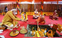 في 5 أغسطس 2020 قام رئيس الورزاء الهندي نارندرا مودي بوضع حجر أساس معبد راما الهندوسي على أنقاض المسجد البابري الذي هدموه في عام 1992، لاعتقادهم أن الموقع هو مسقط رأس الإله راما.[6] نارندرا مودي، في 1992، كان الناشط الذي قاد المظاهرات التي هدمت المسجد البابري. وذاع صيته بسبب ذلك، ليصبح حاكم ولاية گجرات (التي تضم أكبر مدن الهند، ممباي، ثم أصبح رئيس وزراء الهند.