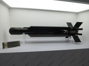 Raytheon then developed a Block 2 variant equipped with a jet engine, improving speed and loiter time to engage larger and further targets.[10][11] The Coyote Block 2 features improved sensors and a turbine engine to increase speed to 345–370 mph (555–595 km/h).[8][15][16] On 17 March 2020, Raytheon was cleared to sell the Coyote Block 2 interceptor as part of the Howler system after entering U.S. military service. Leveraging commercial off-the-shelf components, the interceptor is cheap enough to be used against large drone swarms. Four control fins pop out around the tail to make it maneuverable enough to close in on evading targets. It is fitted with a warhead producing a fragment field of small, fast-moving shrapnel optimized to destroy small drones.[17][18] Using a rocket booster with a turbine sustainment motor, it can engage threats at ranges of 10–15 km (6.2–9.3 mi), and can even re-attack if it misses on the first pass.[16][19] It has a loitering with re-engagement capability and is able to remain airborne for up to four minutes.[20]