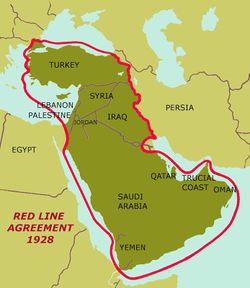 فقد أوضحت الحرب للقوى الكبرى أهمية تملك مصادرهم من النفط. أحد الشركاء الأصليين كان شركة نفط ألمانية، وقد استولى الفرنسيون على الأسهم التي يملكها دويتشه بنك الألماني كتعويض عن الحرب وطالبت حكومات حلفاء الحرب العالمية الأولى أن تكون شركات نفطهم شركاء كذلك. وبعد مداولات طويلة وحادة، سـُمـِح لشركات النفط الأمريكية أن تشتري حصصاً في "شركة النفط التركية TPC"، إلا أن ذلك استغرق سنوات عدة حتى انتهت المفاوضات. وفي 31 يوليو 1928، أبرم شركاء TPC اتفاقية الخط الأحمر Red Line Agreement التي ألزمتهم فعلياً بالعمل معاً ضمن النطاق الجغرافي لعمليات للشركة، داخل حدود الدولة العثمانية السابقة (بإستثناء الكويت).