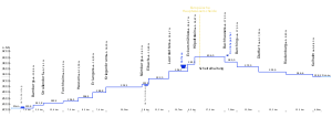 The length of the canal is 171 كيلومتر (106 mi); the summit elevation (between the Hilpoltstein and Bachhausen locks) is 406 متر (1،332 ft) above sea level. This is the highest point on Earth that is currently reached by commercial watercraft from the sea.[4]