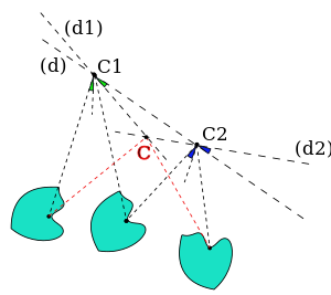 A plane rotation around a point followed by another rotation around a different point results in a total motion which is either a rotation (as in this picture), or a translation.