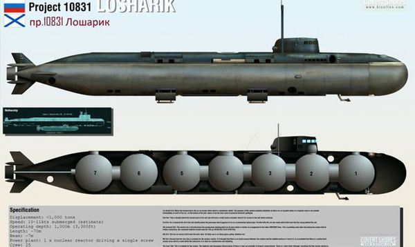 الغواصة الملقبة بلوشاريك، هي غواصة تعمل بالطاقة النووية وأثارت الكثير من التكهنات والشائعات لسنوات حول تصميمها وقدراتها بين محللي البحرية والخبراء العسكريين الغربيين.