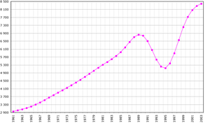 مخطط يوضح سكان رواندا من عام 1961 حتى 2003. (البيانات من منظمة الزراعة والأغذية الأمريكية)