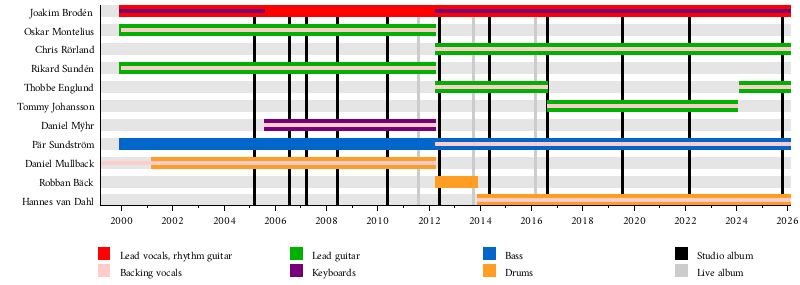 - Joakim Brodén – lead vocals, rhythm guitar (1999–present), keyboards (1999–2005, 2012–present)