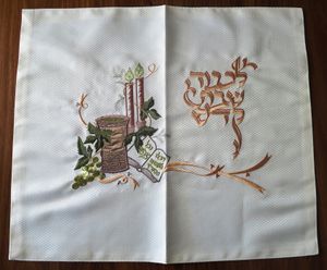 A challah cover with Hebrew inscription