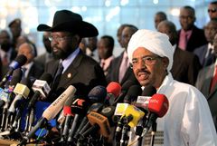 سلفاكير والبشير في مؤتمر صحفي بالخرطوم 9 أكتوبر 2011.